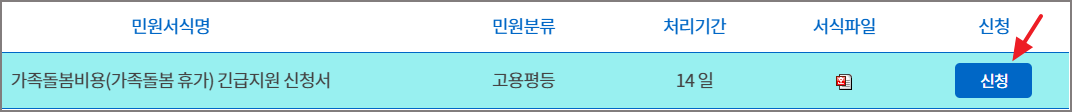 신청 시 주의할 점은, 위의 서류 중에서 사업주가 작성한 가족돌봄휴가 확인서(서식4 참조)를 반드시 첨부해야 합니다.