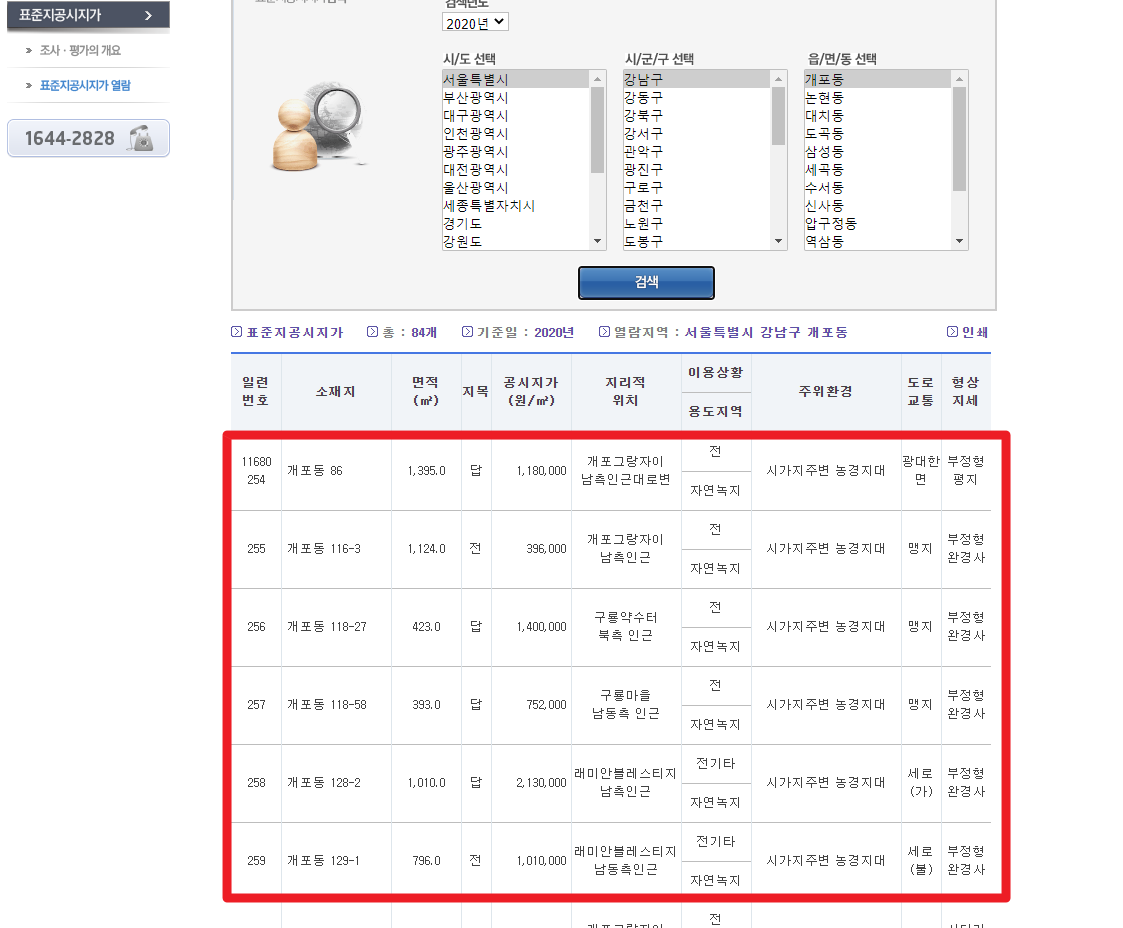 그 표준지의 가격을 기준으로 근처에 있는 개별지의 가격을 시,군,구청장이 정합니다.