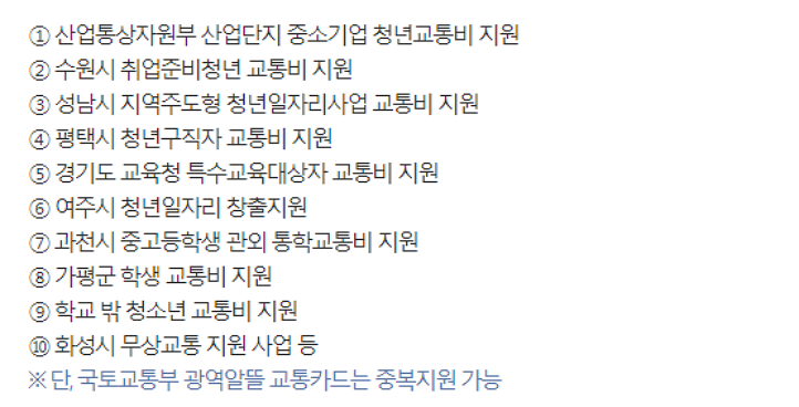 지급방법 : 교통비 신청시 등록한 지역화폐로 지원(이미 쓴 교통비이므로 환급하는 형식입니다.)