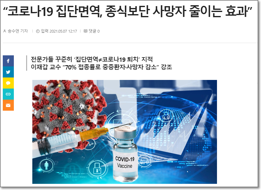 외국에서의 백신접종 결과를 보아도 나오는 내용이지만 백신 접종이 확진자를 줄이기보다는 "사망자"를 줄이는 데 효과가 나타나고 있습니다.