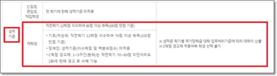 <국가장학금 C학점 경고제>, 성적기준 정리