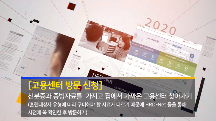 신분증과 증빙자료를 가지고 위에서 검색한 집에서 가까운 고용센터를 찾아가는데요. 그전에 반드시 HRD-Net을 통해서 구비해야 할 자료를 챙기고 찾아가야 합니다.