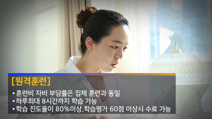 그리고 원격훈련 즉 동영상 강의도 가능하다는 점 꼭 참고하세요. 훈련장려금은 구직자(취업성공패키지) 대상입니다.