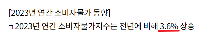 이러한 국민연금은 매년 일정금액이 오르는 경우가 있는데요. 이는 실질가치보장을 위한 것입니다. 예를 들어서 2023년의 60만원이 2033년에는 70만원과 비슷하다고 느낄 수 있다는 것입니다. 그래서 국민연금은 매년 인상요인이 있을 때 지급액을 올려주는데요. 이를 결정하는 요인은 바로 소비자물가변동률입니다. 2023년 12월29일 발표된 통계청의 2023년 연간 소비자물가 동향을 보면 소비자물가지수가 전년(2022년)에 비해 3.6% 상승했다고 쓰여있습니다.