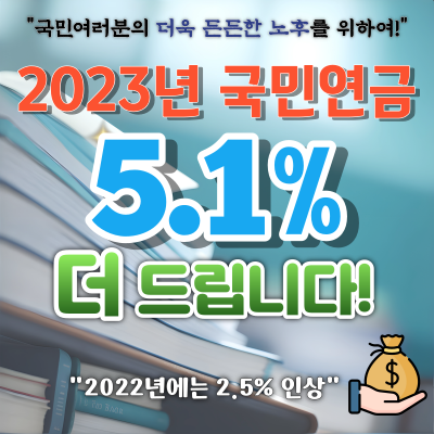 23년 초에 국민연금공단에서 국민연금 수급자가 받는 국민연금액을 5.1% 인상한다는 발표한 적이 있는데요.