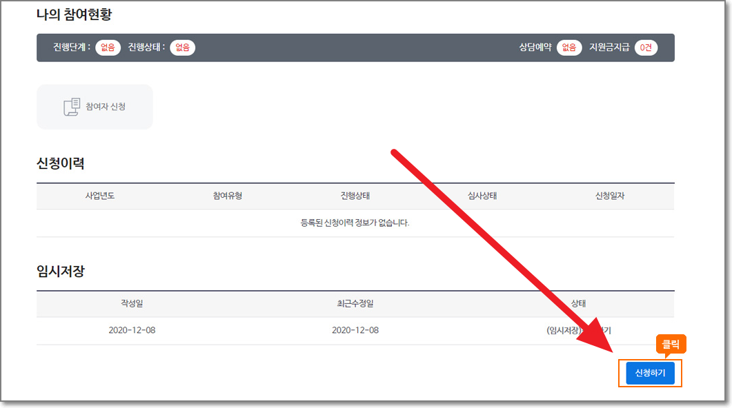 그다음으로 나오는 나의 참여현황에서 "신청하기"를 누릅니다.