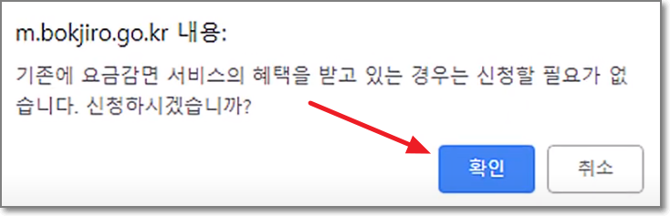 휴대전화 요금감면 서비스를 신청하시려면 "예"를 선택합니다.