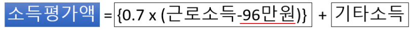 기초연금뿐 아니라 복지제도의 다른 부분에서도 나오는 소득인정액은 소득평가액에 재산의 소득환산액을 더하는건데요. 이중에서 소득평가액의 기본공제금액을 103만원으로 상향시켰기때문에 노인일자리를 통해서 200만원의 소득을 올렸다고 해도 소득평가액은 679,000원이 되는 것입니다. 이전처럼 기본공제액이 96만원이라면 위의 상황에서 소득평가액은 728,000원이 되는 것입니다. 소득인정액에 대한 내용은 아래글을 참고해주시기 바랍니다.