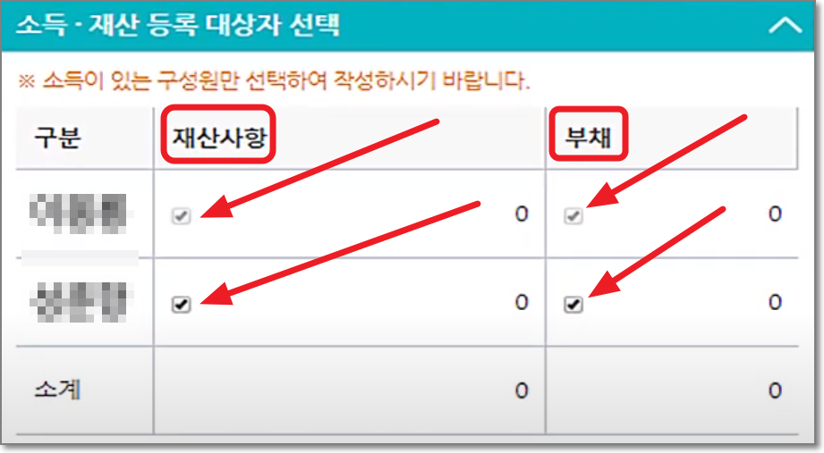 소득재산신고를 작성하고 다음으로 넘어갑니다.