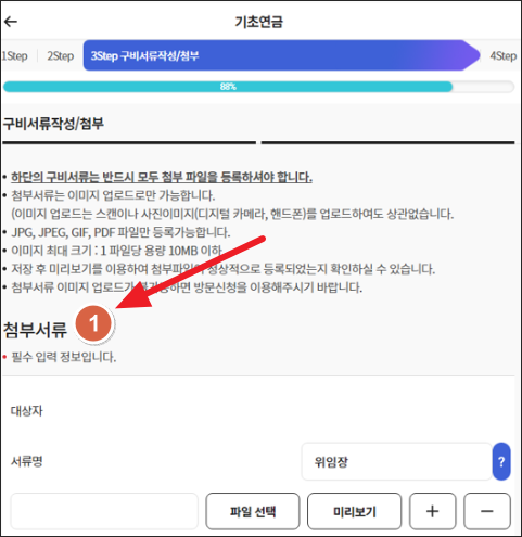 구비서류를 작성하고 다음으로 넘어갑니다.