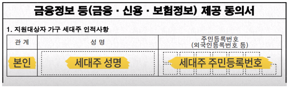📢 중요, 배우자의 금융정보 등 제공동의 필요