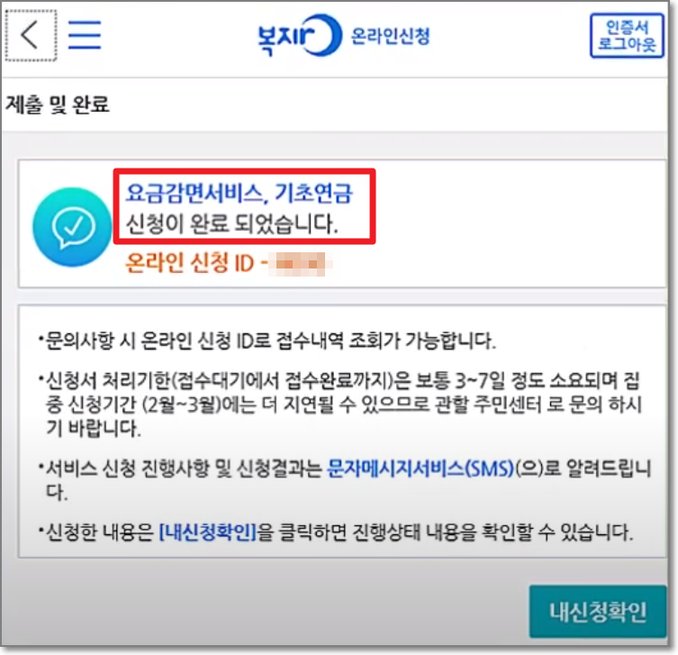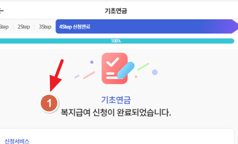 이제 아래화면처럼 "신청이 완료되었습니다"가 보이시면 기초연금 모바일 신청이 완료된 것입니다.