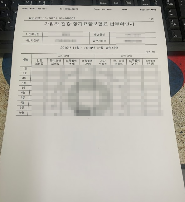 좀 있으면 팩스로 가입자 건강.장기요양보험료 납부확인서가 옵니다.