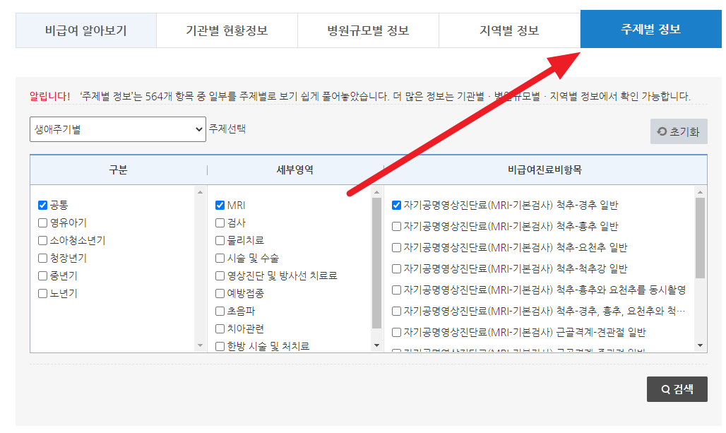 그리고 나오는 메뉴중에서 아래처럼 "비급여 알아보기"를 누릅니다.