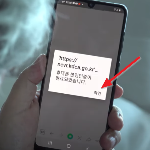 본인인증이 완료되면 완료되었다는 화면이 나오는데요. "확인"을 누릅니다.