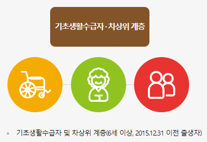 기초생활수급자 및 차상위 계층(6세 이상, 2016.12.31 이전 출생자)