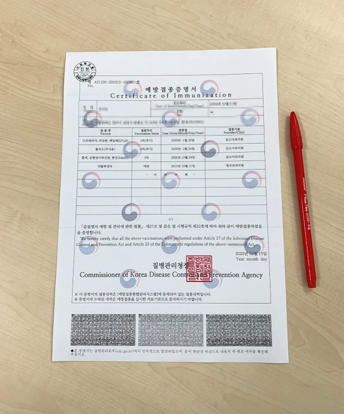 또한 해외에서도 마찬가지로 예방접종을 맞지 않았을 경우 해외학교에서 입학을 불허할 수도 있으므로 예방접종증명서는 해외유학시 내야할 필요서류이기도 합니다.