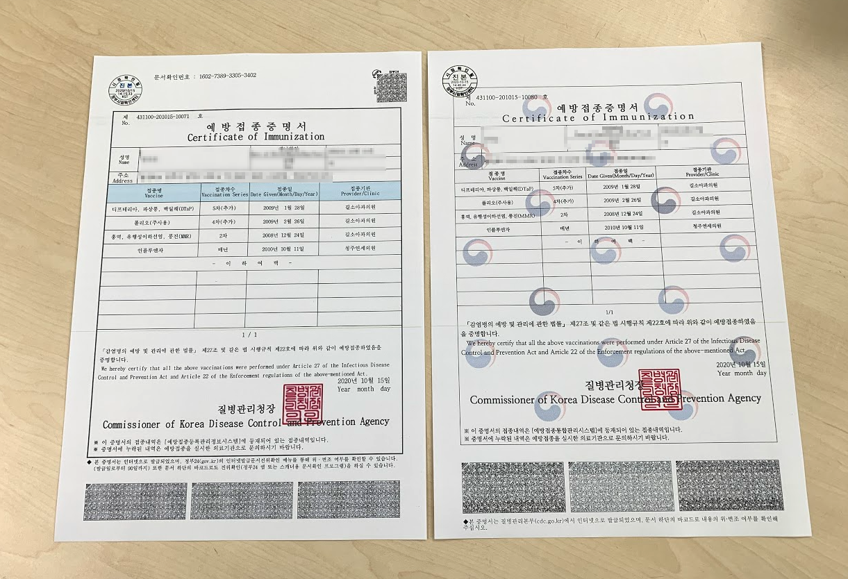 예방접종 증명서는 2군데에서 발급받을 수 있습니다.