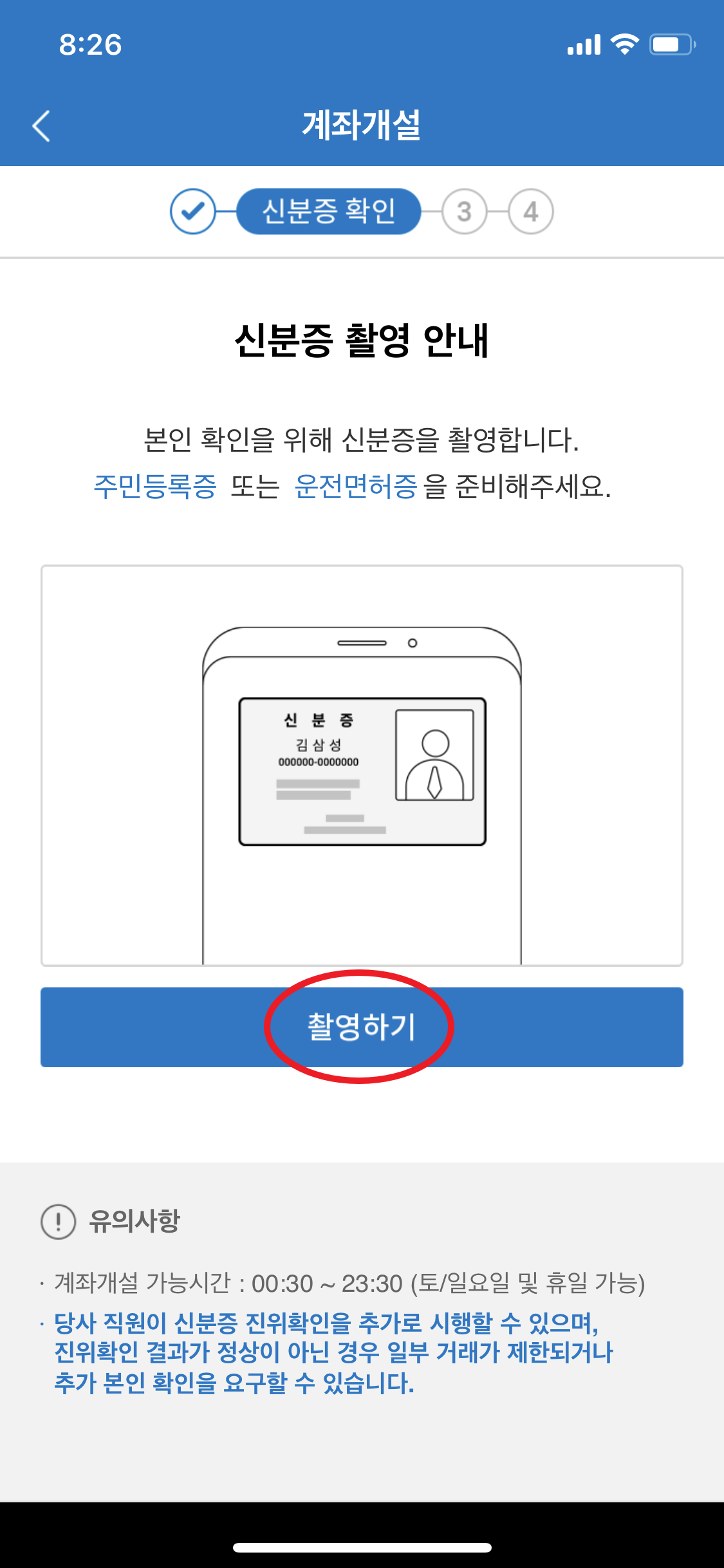 바로 준비했습니다. "스마트폰(본인명의)과 신분증(운전면허증)"
