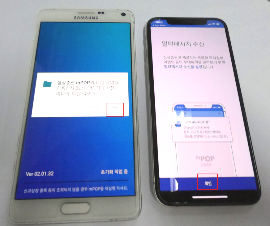 이제부터는 두기종 모두 진행화면이 같습니다. 이제 한개의 폰으로 설명드리겠습니다.