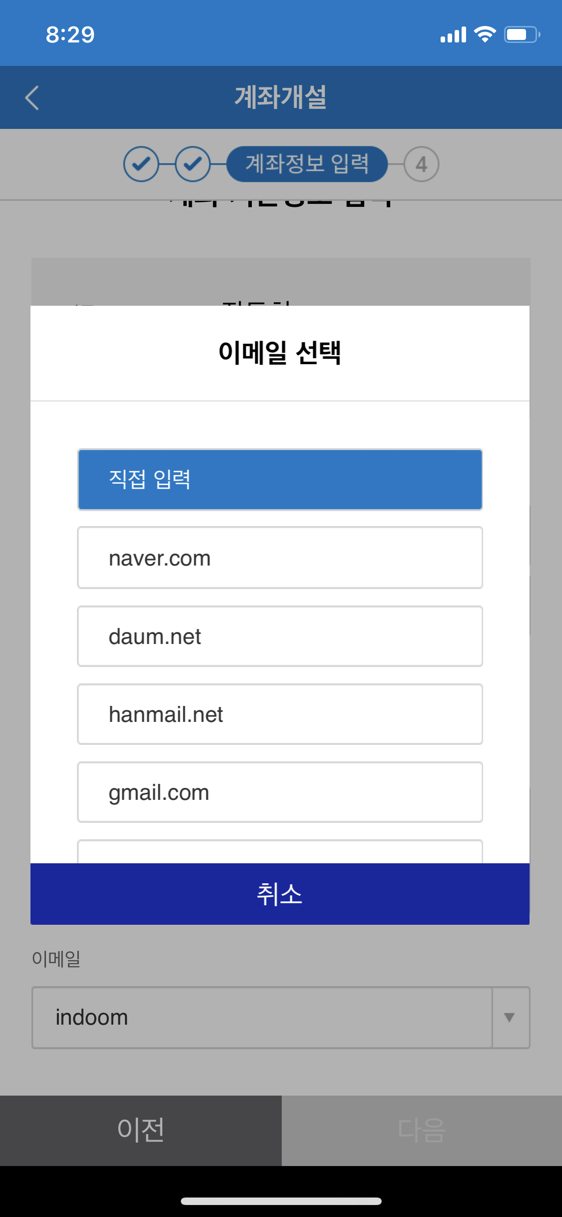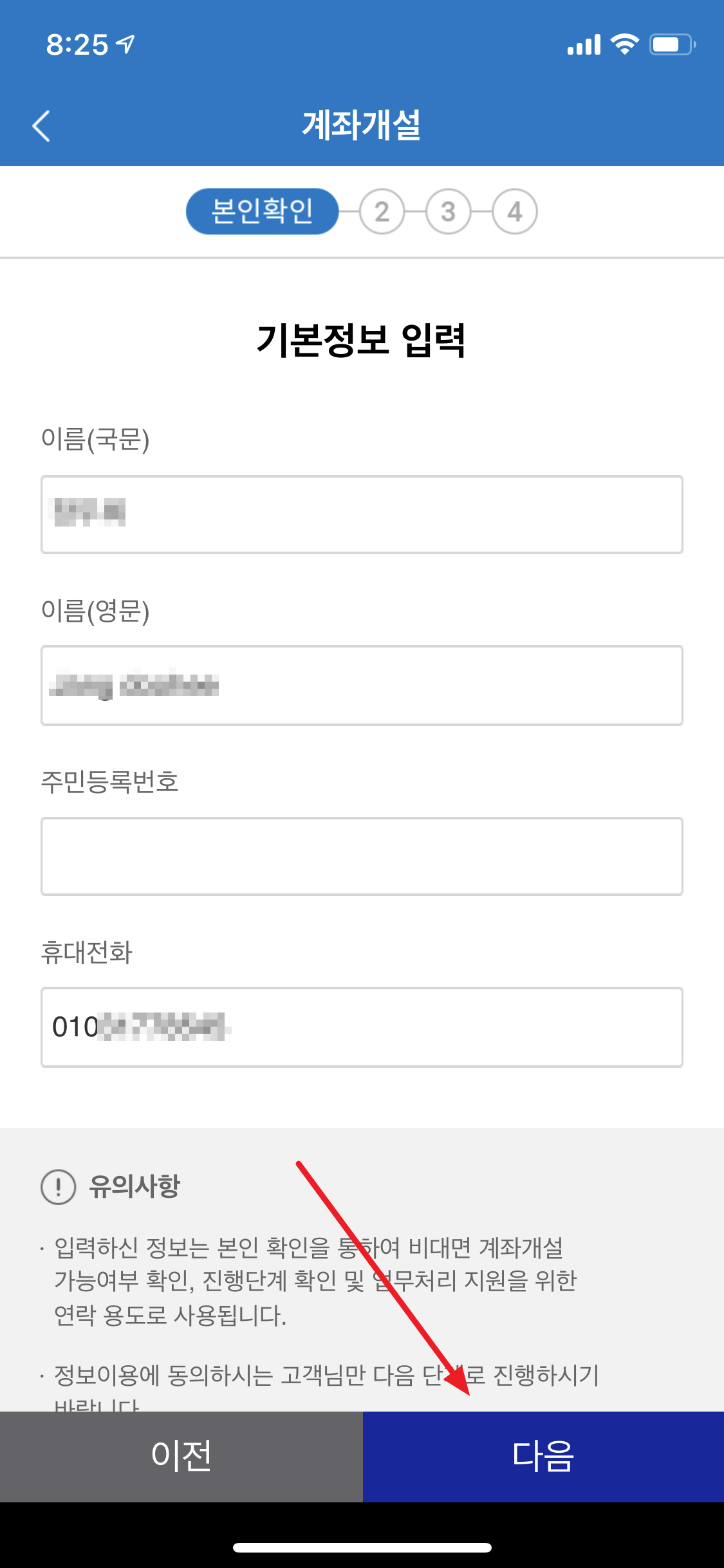 다 입력했으면 아래쪽에 있는 다음을 누릅니다.