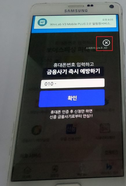 갤럭시의 경우에 V3라는 바이러스 방지 프로그램을 추가로 설치해야 해서 조금 절차가 더 있습니다.