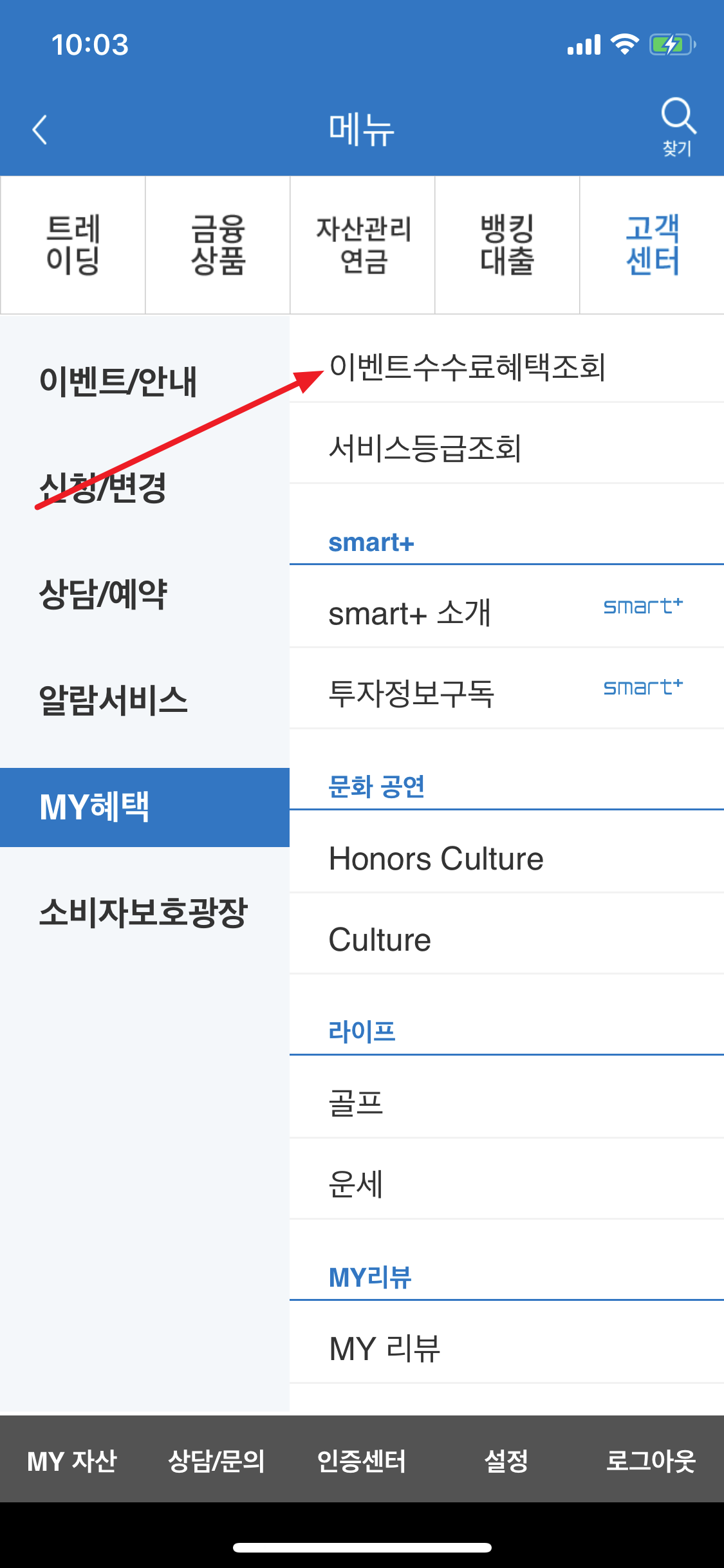 다시한번 혜택을 확인하려면, 고객센터를 클릭합니다.