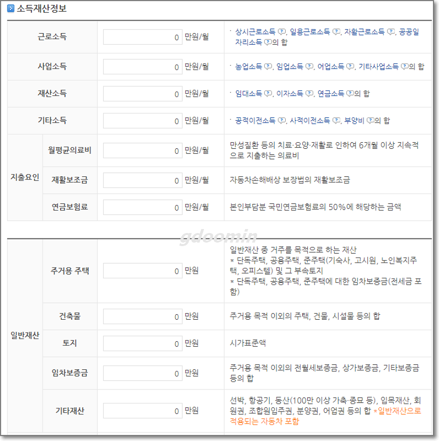 1. 기본정보와 소득재산정보 입력