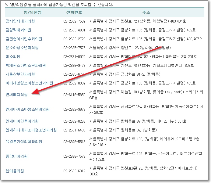 병/의원 목록이 나오는데 이중에서 집과 가깝거나 마음에 드는 병원을 클릭합니다. 여기서는 "연세메디의원"을 클릭해보겠습니다.