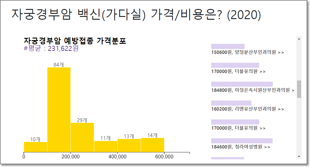 2020년 가다실의 가격은 평균 231,622원 이었습니다.