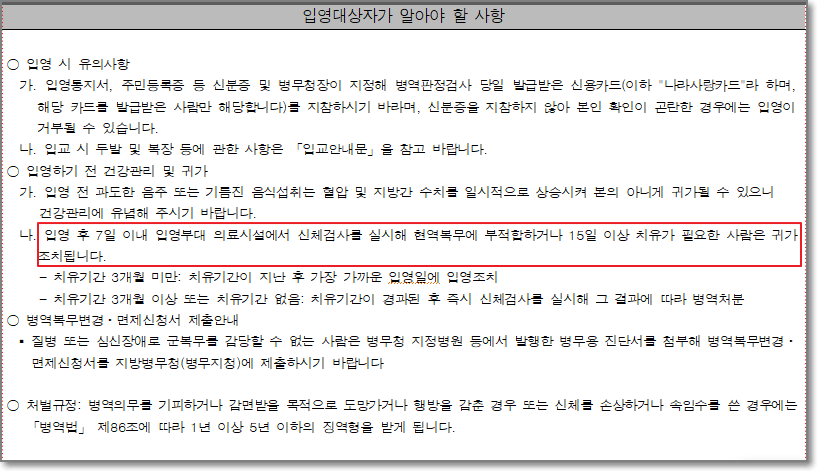 만약 입영판정검사 통지서를 받았다면 해당되는 기간 안에 검사를 받아야 합니다. 만약 검사를 받지 않은 경우에는 입영을 할 수 없기 때문에 달라진 규정을 꼭 확인하고 기간 안에 검사를 받으셔야 합니다.