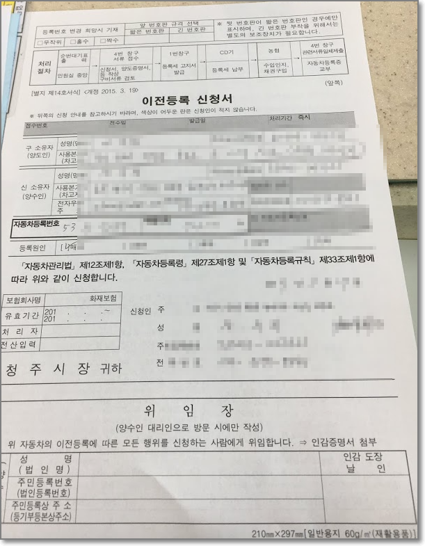 그리고 개인이긴 한데 한사람은 필요한 서류를 챙겨서 돈받고 서류와 차를 챙겨가서 등록해야 하는 경우가 있습니다.