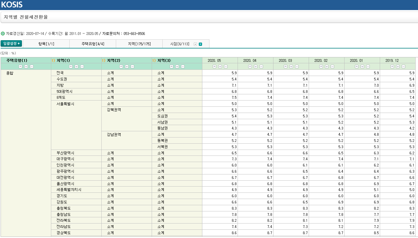 아래표는 전월세 전환율을 조사해놓은 것입니다. (출처 : 통계청)