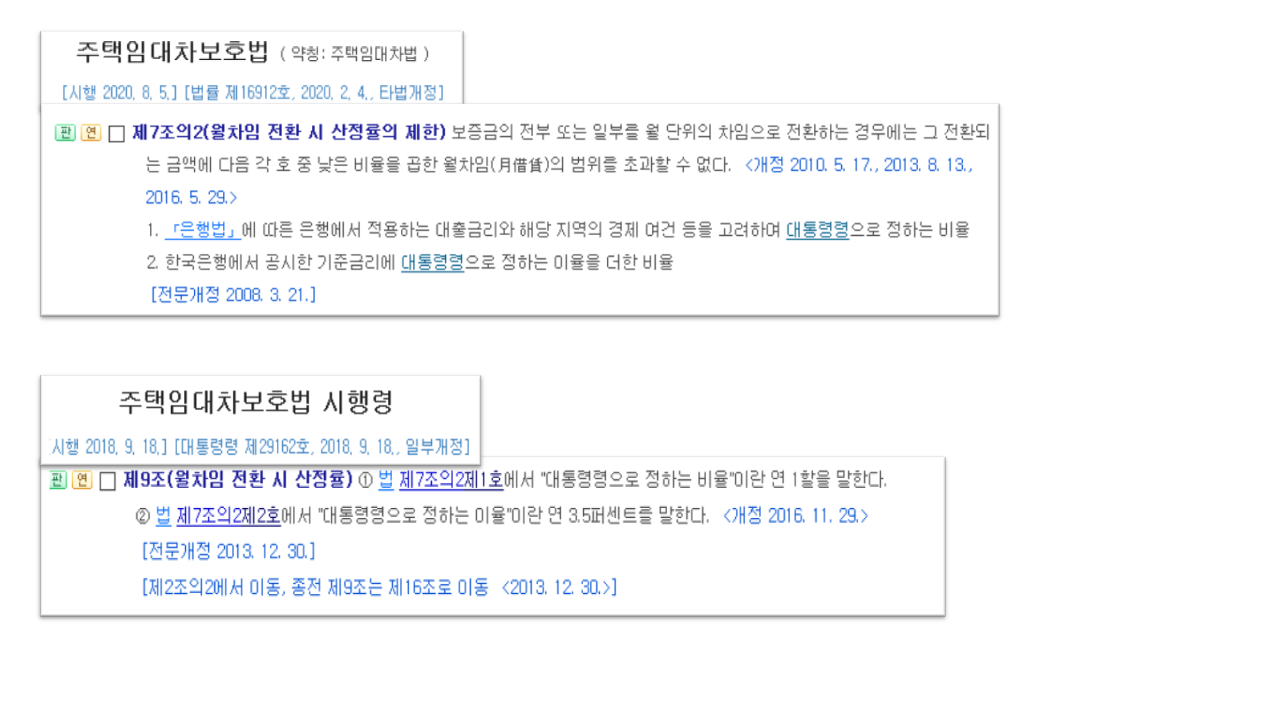 전월세 전환율이 법적으로 정해지지 않으면 마구 올라갈 수도 있는 걱정을 했는지, 정부는 '주택임대차보호법'에 이 전월세전환율에 대해서 규정을 해놓았습니다.