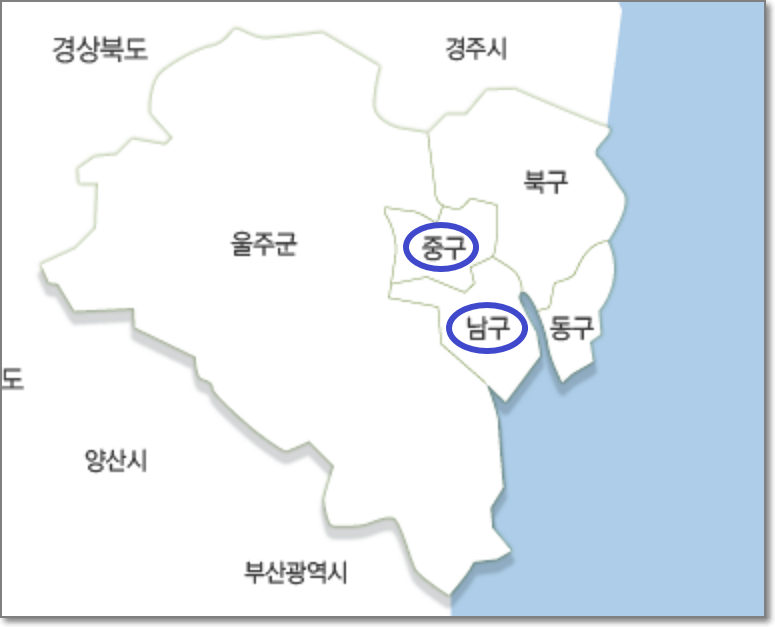 울산시는 총 4개의 구로 이루어져 있는데 그중에 이번 12월18일에는 중구와 남구가 조정대상지역으로 지정되었습니다.