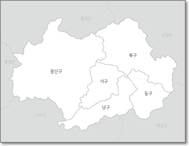광주는 동구, 서구, 남구, 북구, 광산구 해서 총 5곳,