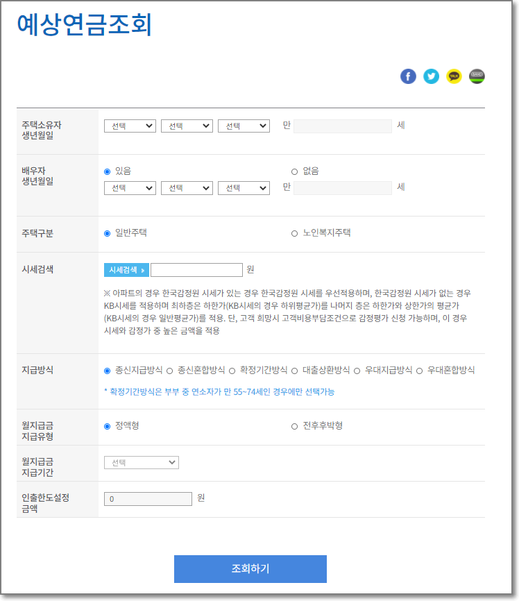 주택연금의 시행사인 한국주택금융공사에 가보면 예상연금이라고 주택연금 수령액을 미리 조회해보실 수 있습니다.