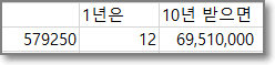 엑셀로 단순 계산을 해보면, 10년 받으면 6951만원 받게 되는겁니다.