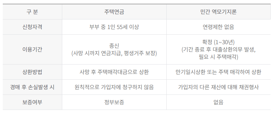 주택연금(住宅年金)과 역모기지론(逆 Mortgage Loan ) 비교