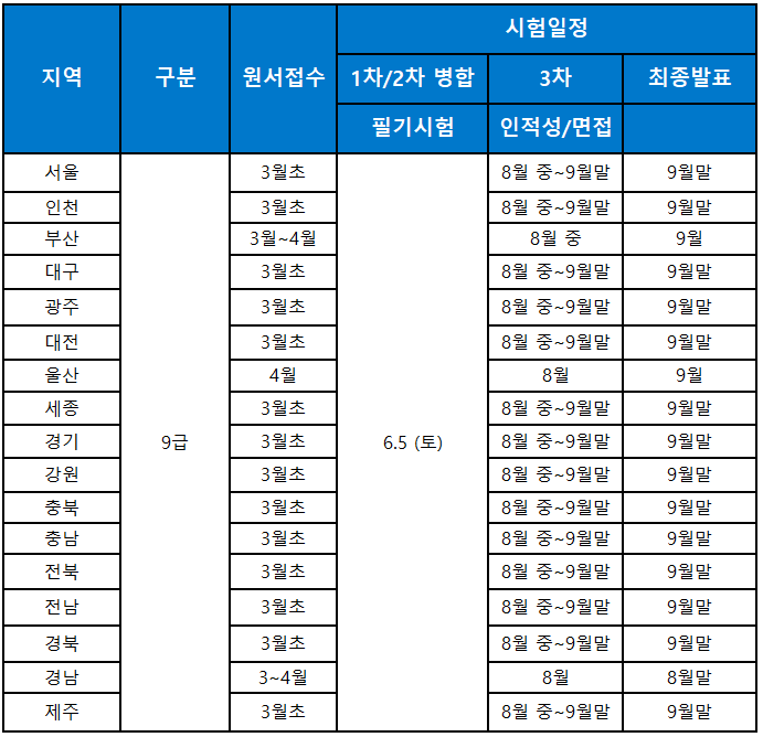 ⑥ 2021 계리직(우정9급) 공무원 시험일정