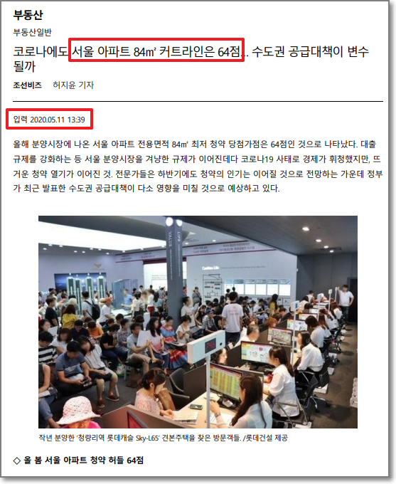 자 그럼 과연 55점이면 경쟁력이 있을까요? 최근 2020년 5월11일에 나온 뉴스를 보겠습니다.