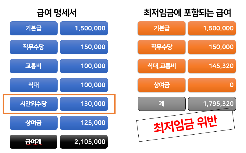최저임금에 해당하는 급여항목