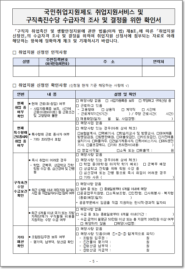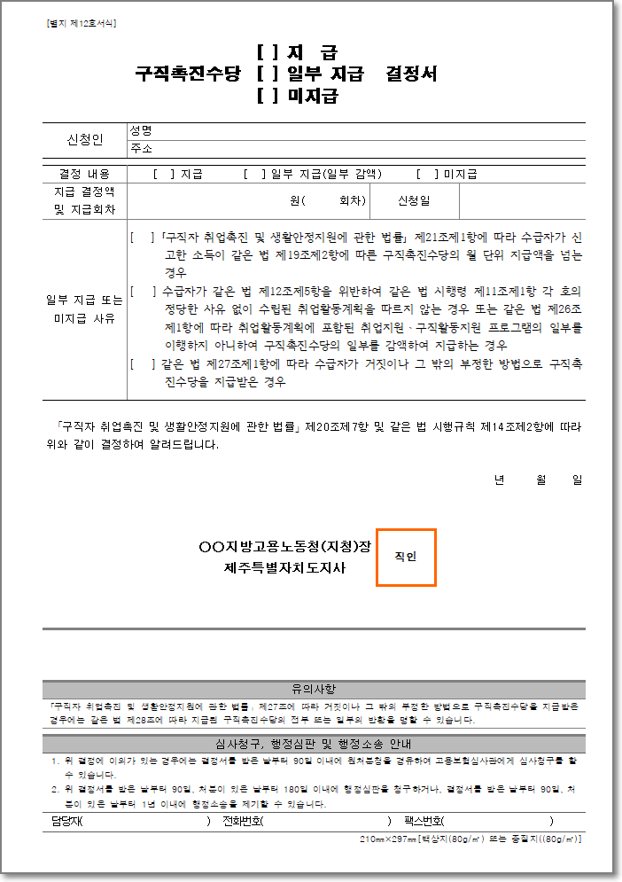 구직촉진수당 서식