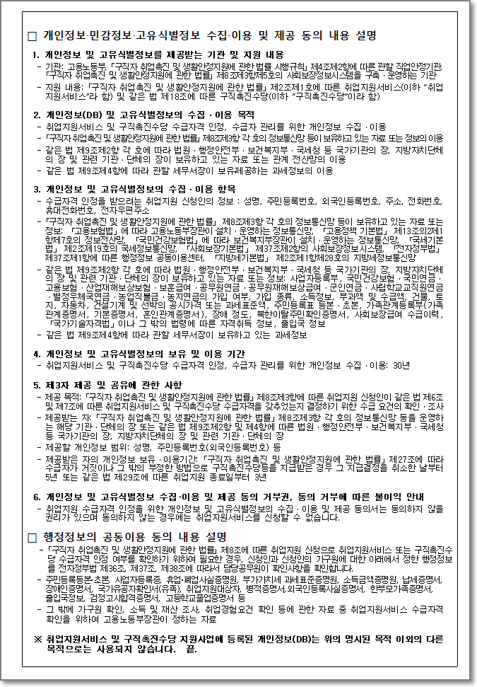 개인정보 등 수집 이용 및 제공 동의서 3페이지