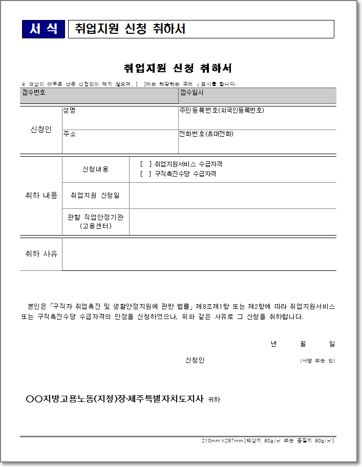 취업지원 신청 취하서