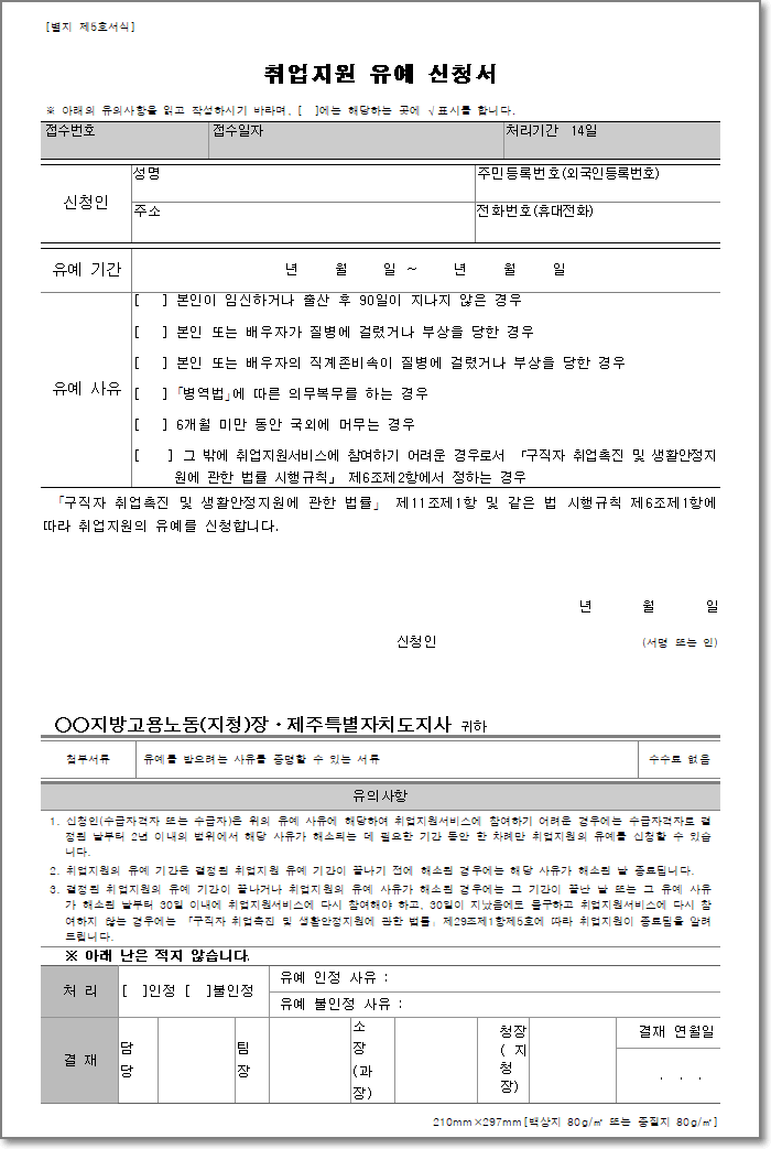 1. 별지 제5호(취업지원 유예 신청서)
