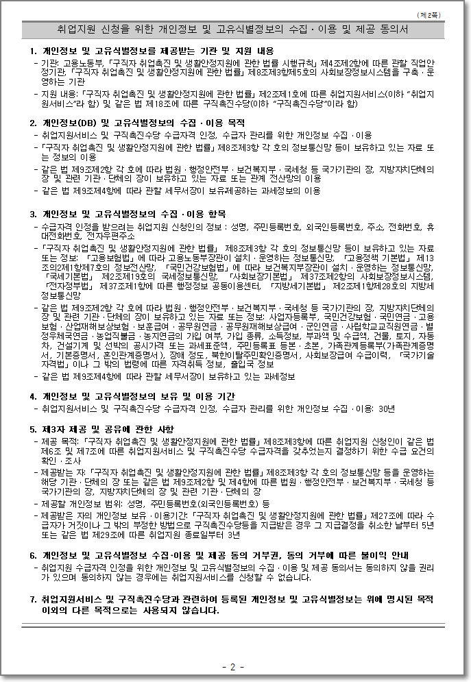 개인정보 등 수집 이용 및 제공 동의서 2페이지