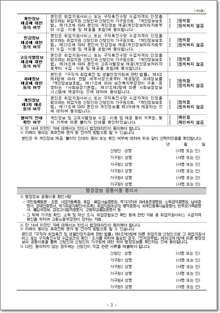 개인정보 등 수집 이용 및 제공 동의서 3페이지