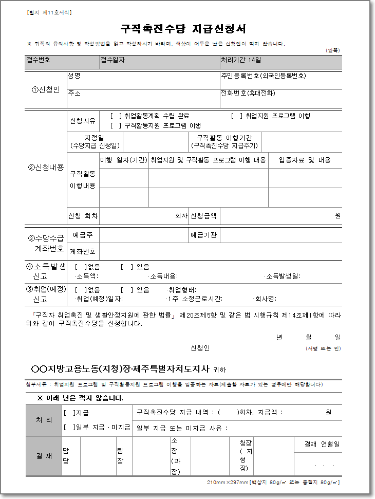 1. 별지 제11호(구직촉진수당 지급신청서)