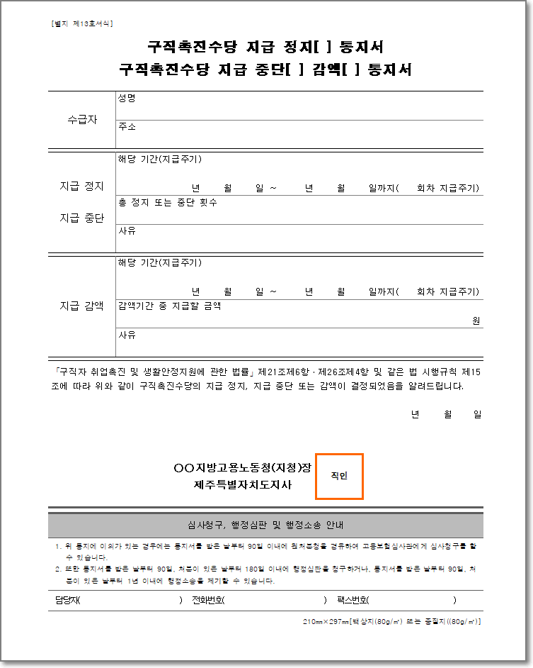 구직촉진수당 서식